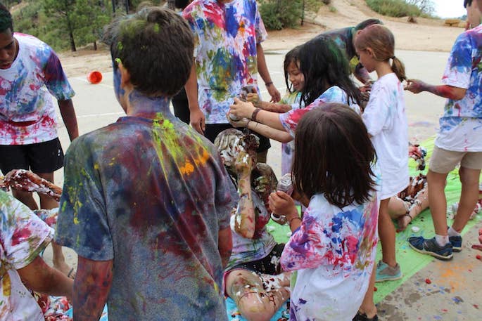 The rain couldn't keep us away and we were able to have Messy Wars - one of the highlights of the week for many campers! The campers and counselors alike love Messy Wars, even though nobody likes cleaning up. Messy Wars is a great way for everyone to let loose and let their artistic side out. We were able to play paint tag, throw colored Holi powder and sundae our camp admin team! Some of the campers ended up getting much more messy than our counselors and staff but we all hosed them down before continuing with the rest of our day.
